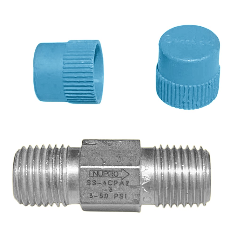 SS-4CPA2-3,Stainless Steel 1-Piece Poppet Check Valve, Adjustable Pressure, 1/4 in. MNPT, 3 to 50 psig (0.21 to 3.5 bar)
