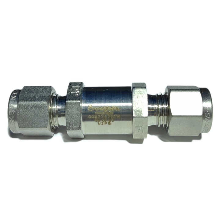 SS-4C-1/3,Stainless Steel Poppet Check Valve, Fixed Pressure, 1/4 in. Swagelok Tube Fitting, 1/3 psig (0.03 bar)