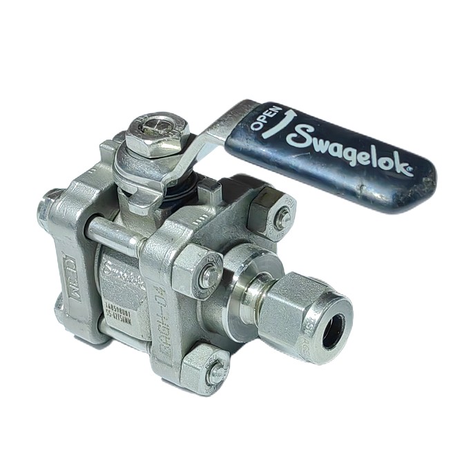 SS-62TS6MM,Stainless Steel 3-Piece 60 Series Ball Valve, Reinforced PTFE Seats, 6 mm Swagelok Tube Fitting